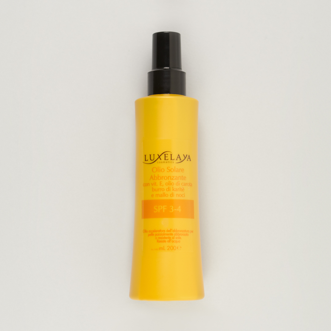 Olio Solare Abbronzante con Vitamina E, burro di karitè, olio di carota e mallo di noci.